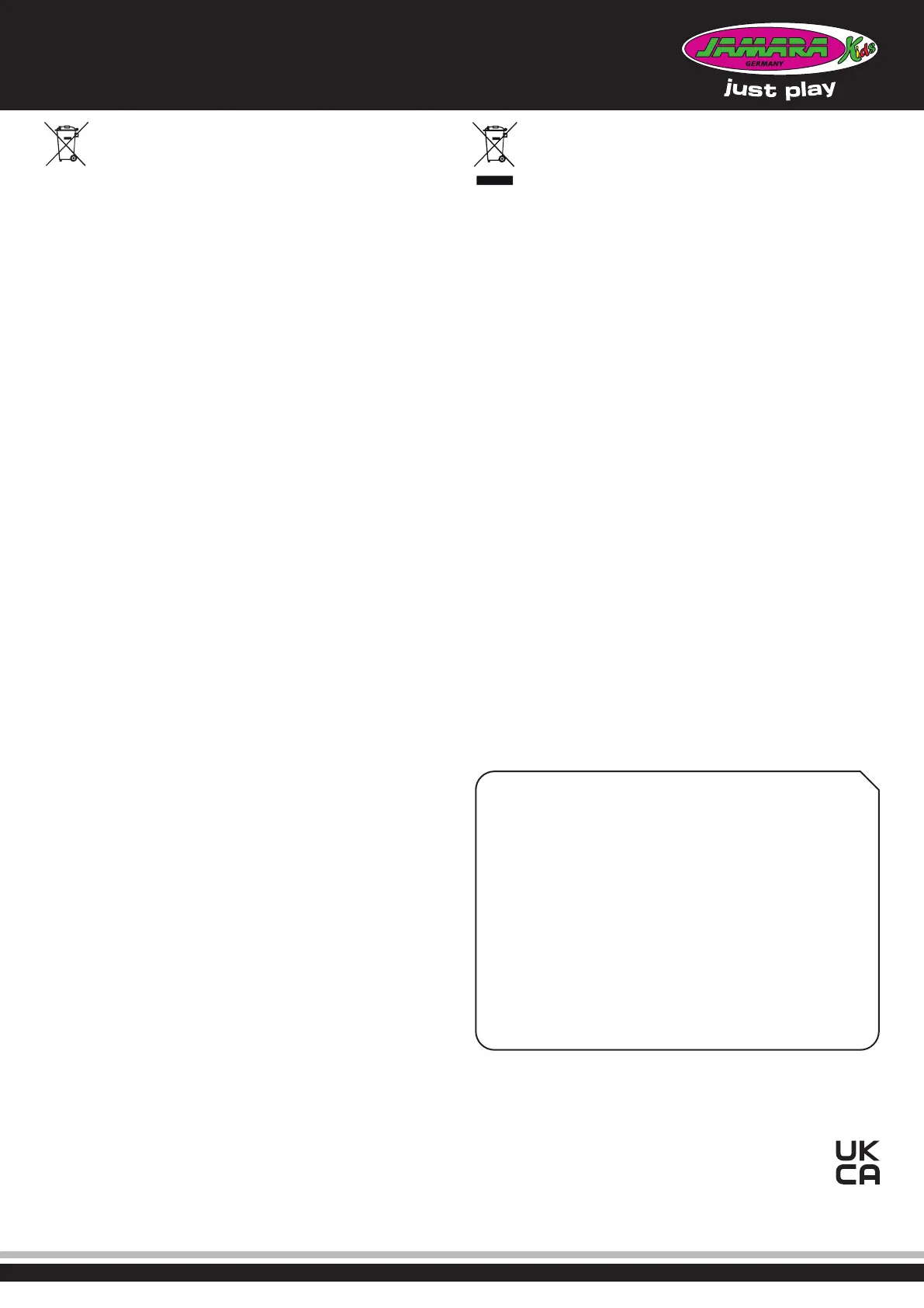 Tel +49 (0) 7565 9412-0, Fax +49 (0) 7565 9412-23, info@jamara.com, www.jamara.com