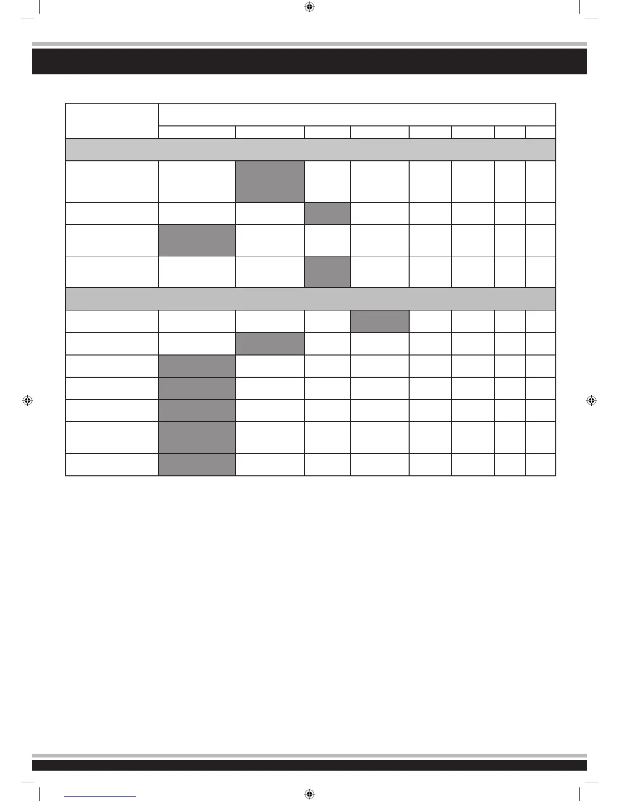 Die grau hinterlegten Felder geben die Werkseinstellung wieder.