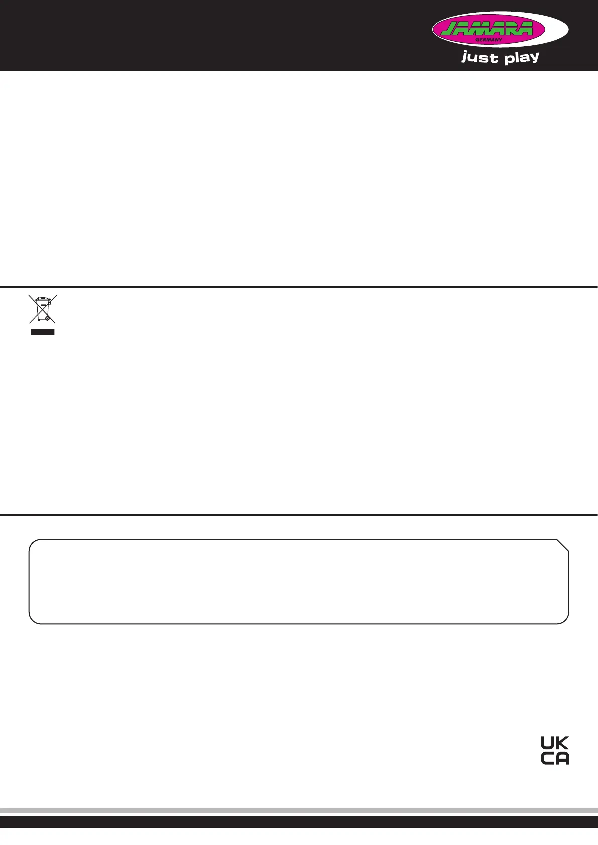 EU - JAMARA e.K., Manuel Natterer, Am Lauerbühl 5, DE-88317 Aichstetten, Tel +49 (0) 7565 9412-0, Fax +49 (0) 7565 9412-23, info@jamara.com, www.jamara.com