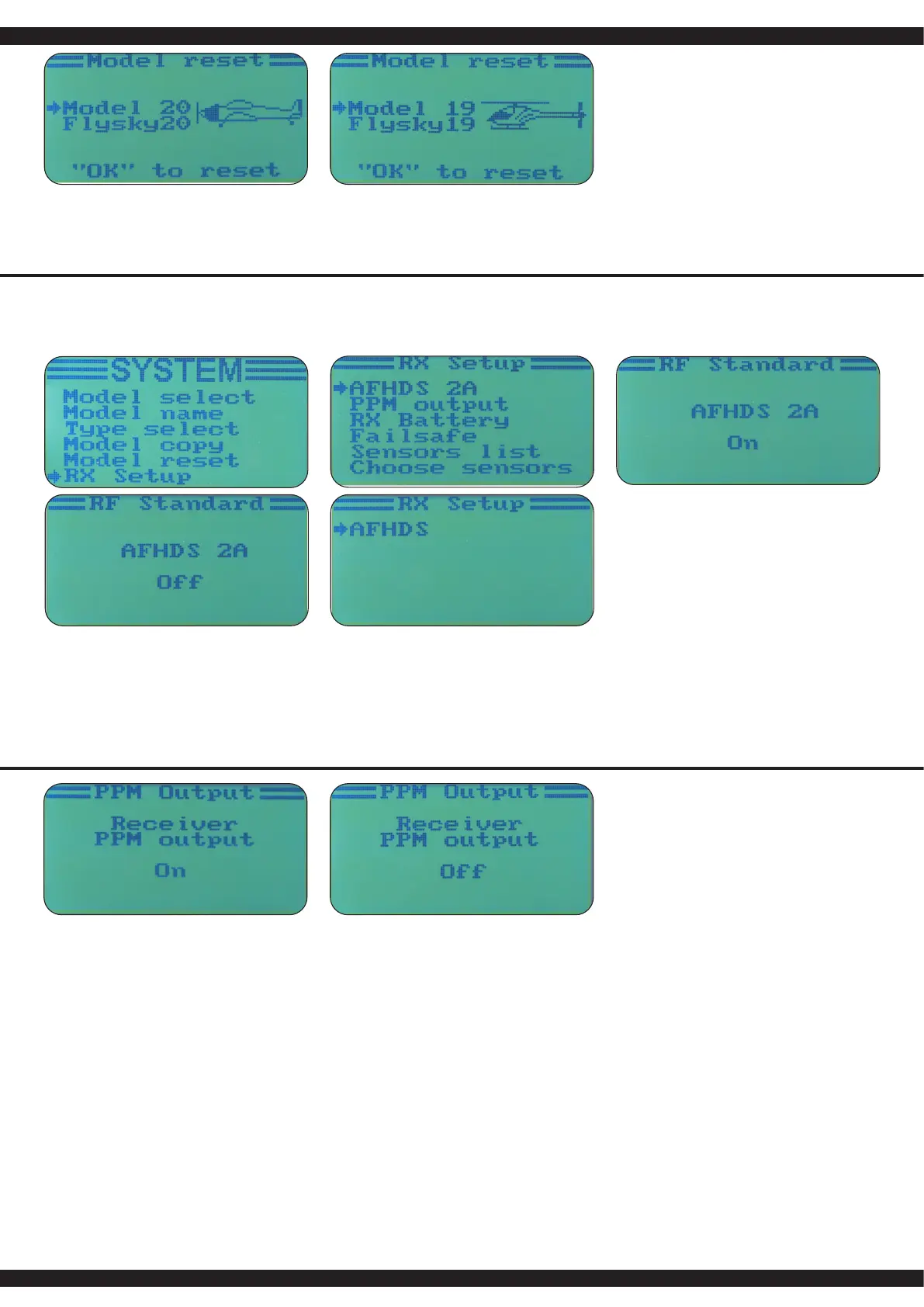 • Switch back to „AFHDS 2A“ according to the same principle as described above.