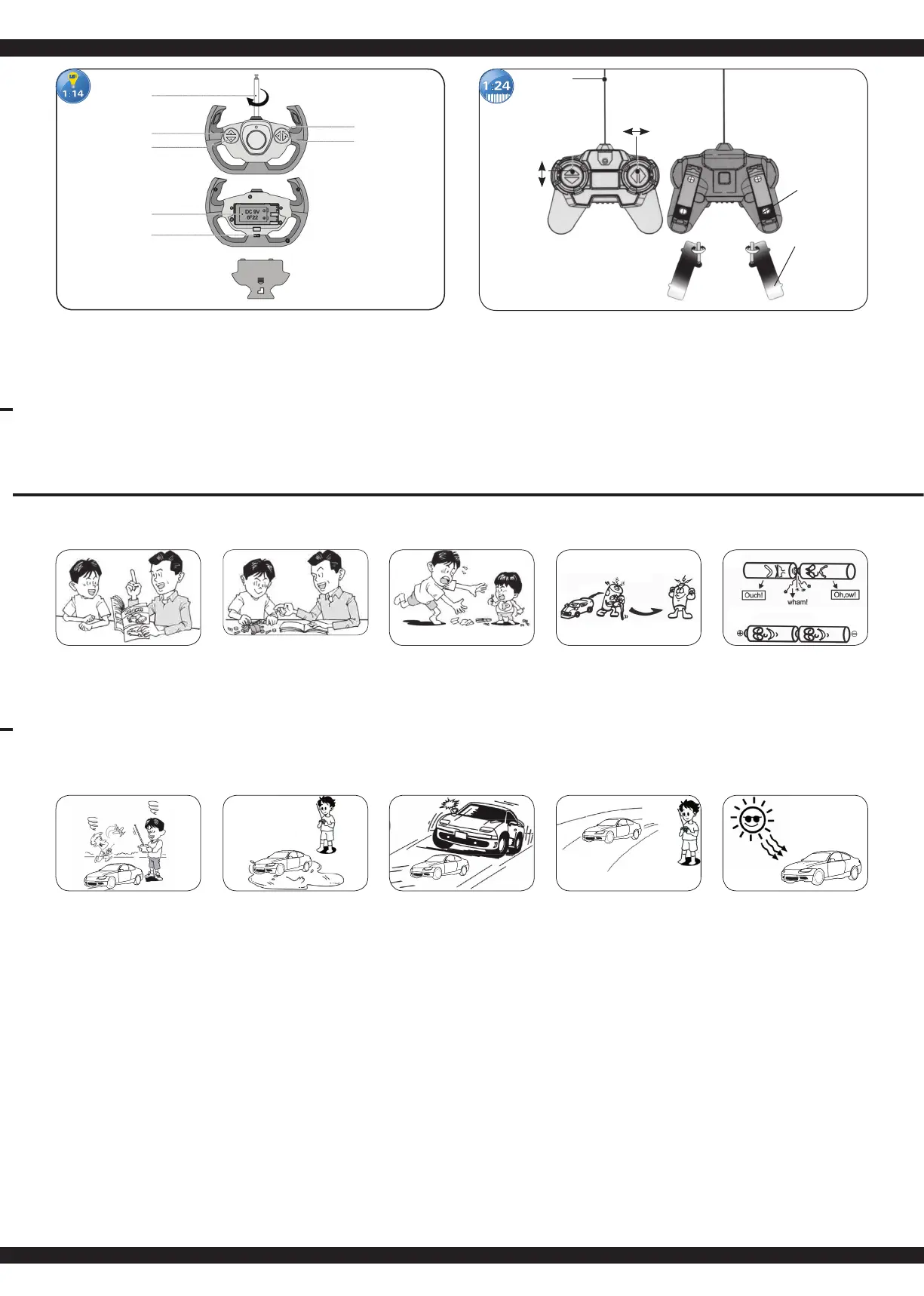 6. Batterie box, 7. On/Off Switch (only 1/14).