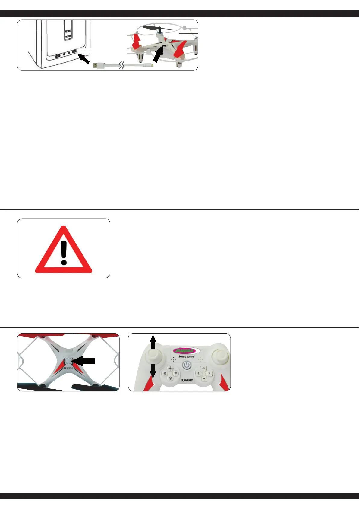 1. Make sure that the throttle stick are at the bottom (no throttle
