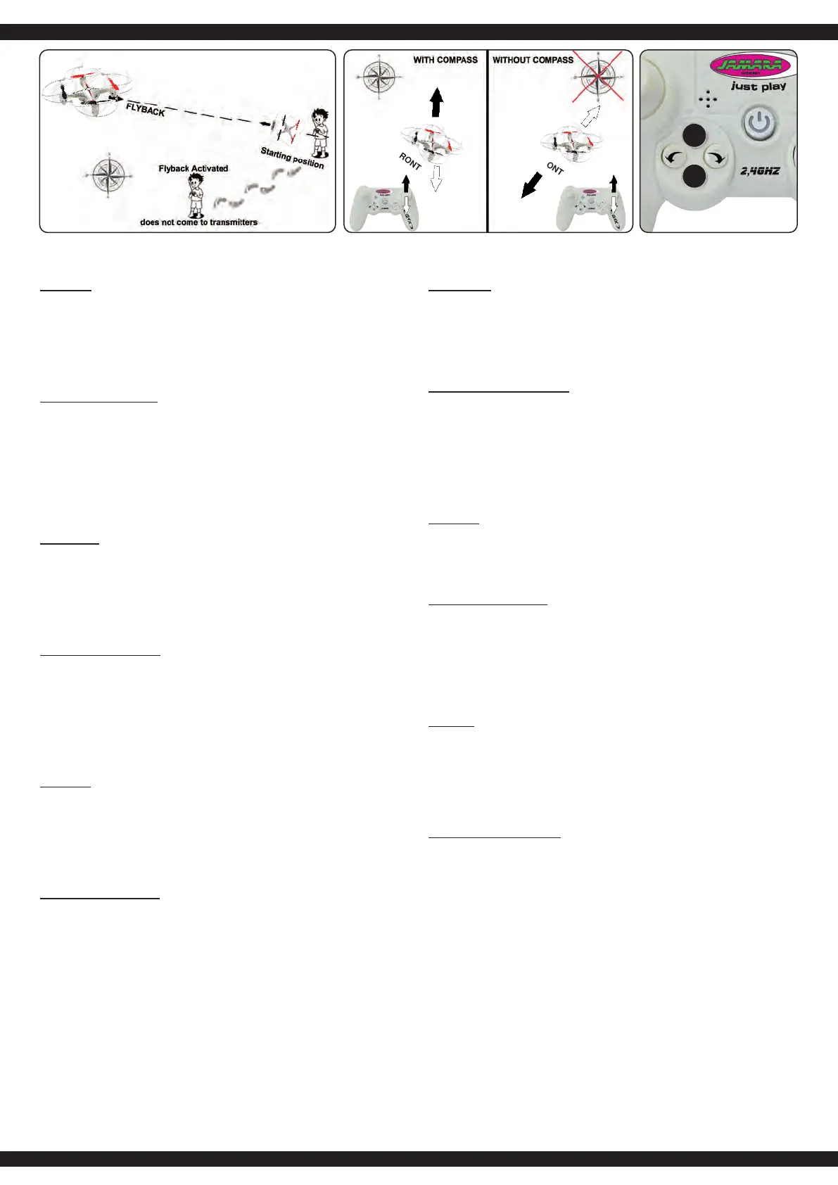 højre styrehåndtag berøres. Er Flyback el. kompasfunktionen aktiveret skal modellens højde fortsat