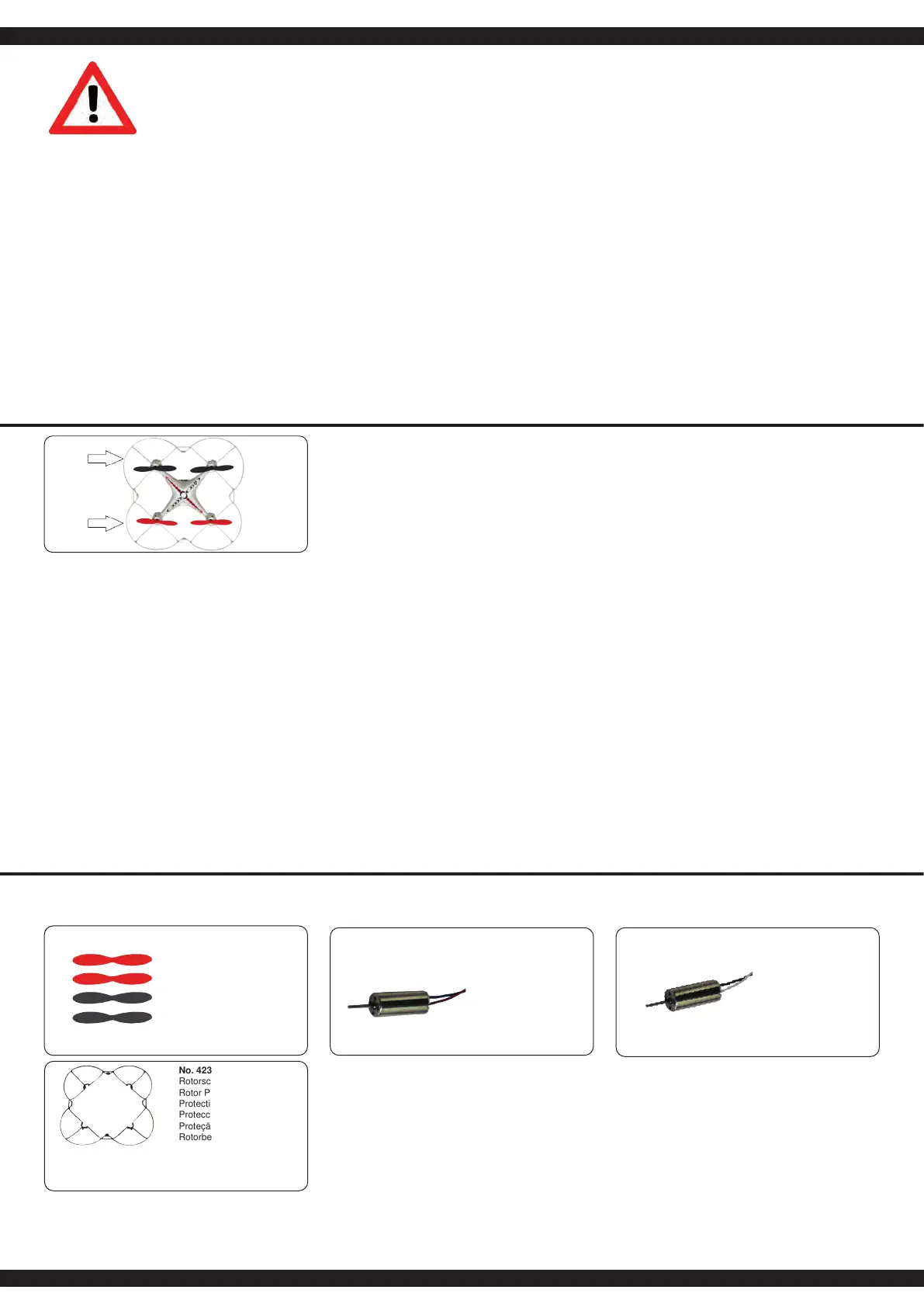 attentivement l’image et les étiquettes sur pales de rotor. Le modèle sera ingérable en cas des
