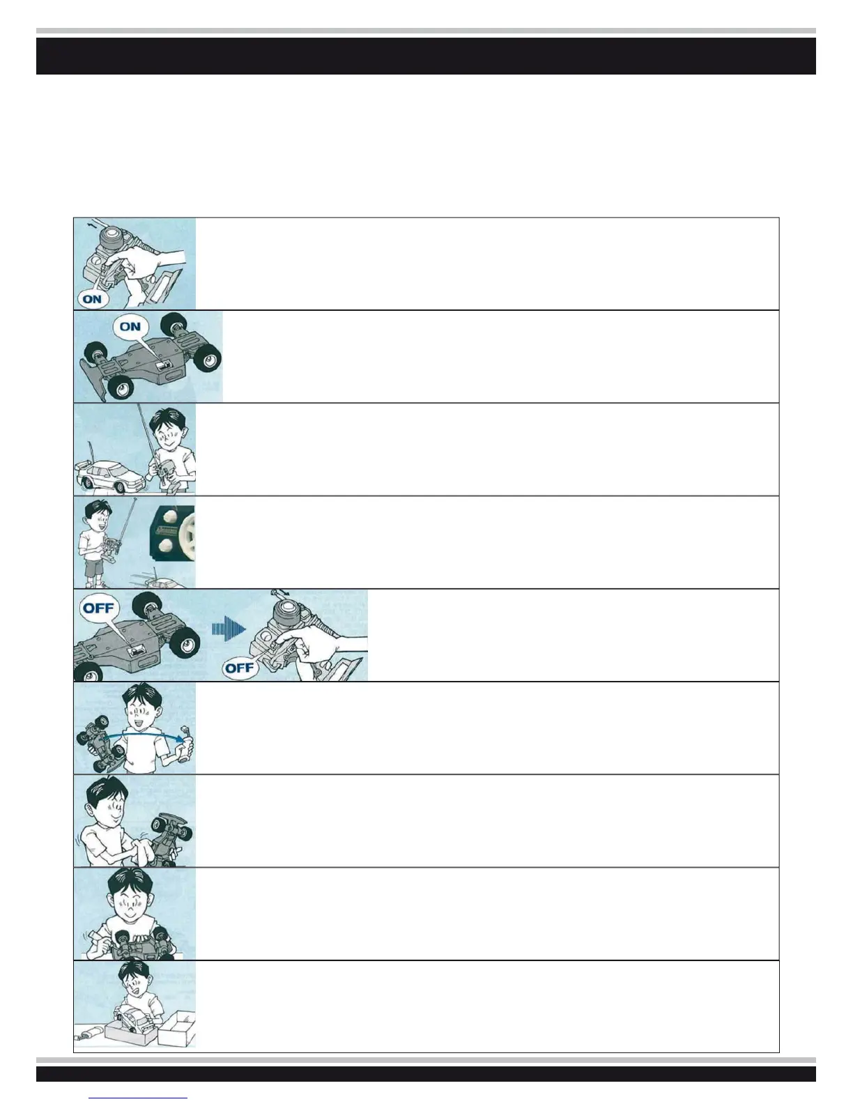 - Avoid running in standing water and rain. If R/C unit, motor, or battery