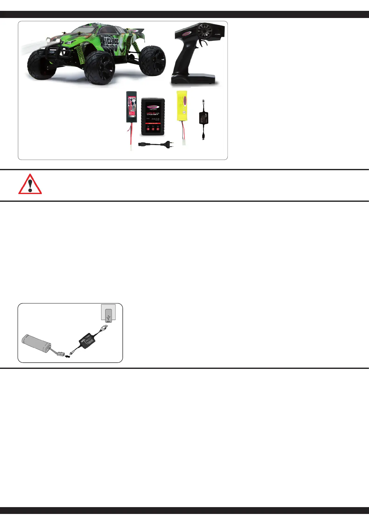 the battery. The LED on the charger lights up green. Connect the USB charger to the NiMh drive