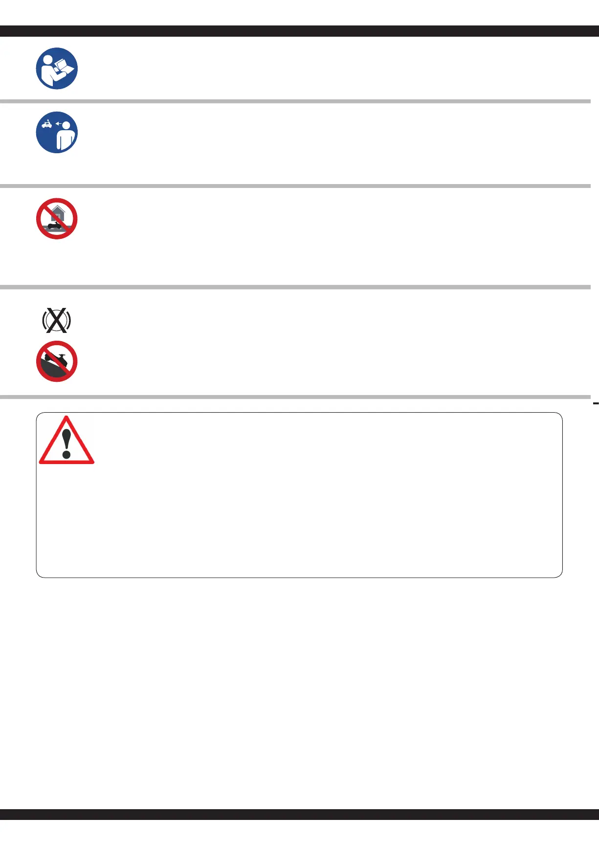 GB - DO NOT use the vehicle on public roads or places or other dangerous locations.