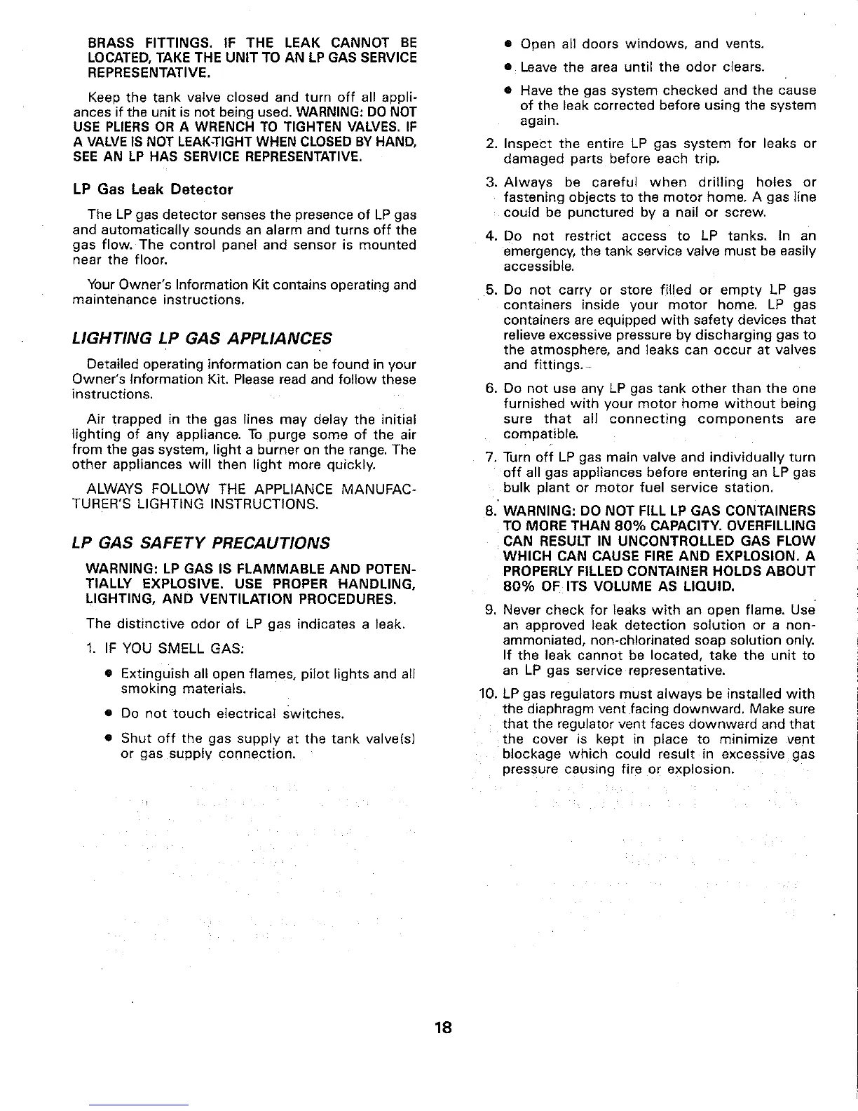 LIGHTING LP GAS APPLIANCES