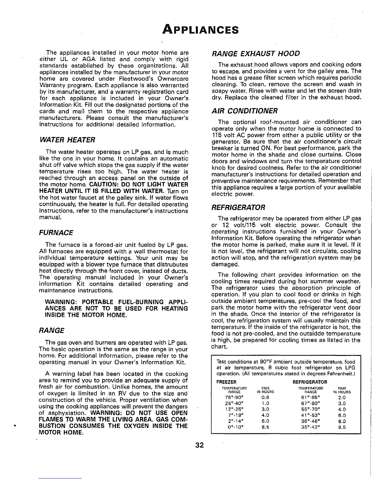 operation. (All temperatures stated in degrees Fahrenheit.)