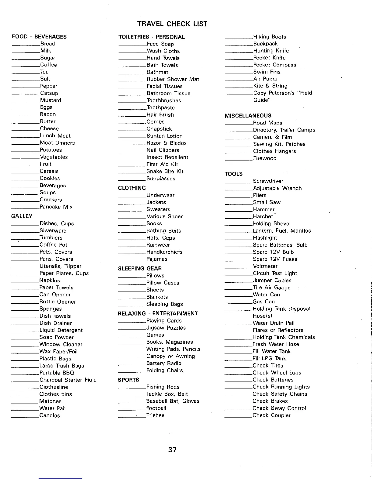 TRAVEL CHECK LIST
