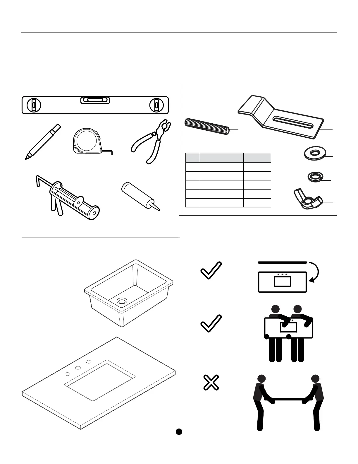 • Ensure the vanity cabinet is in place and has been properly installed to meet plumbing codes. For your safety and to