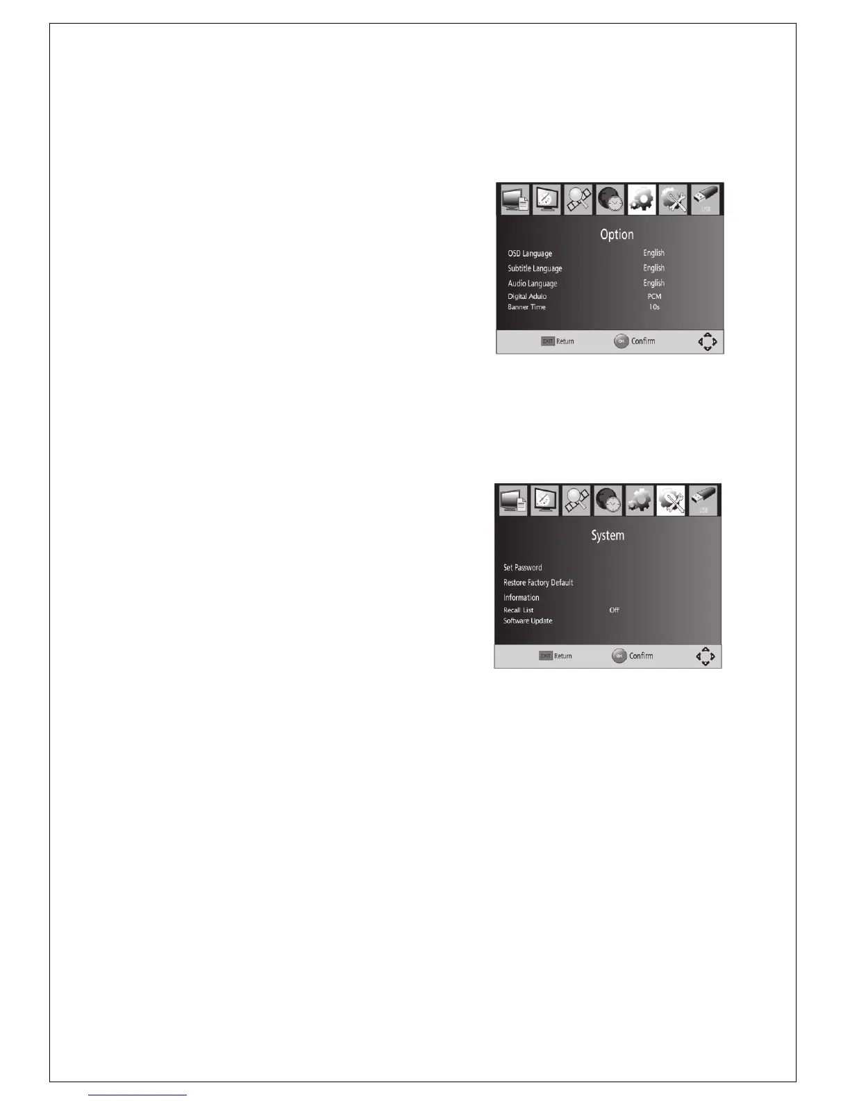 Jameson JS-2012 - Seçenekler; Sistem Ayarları