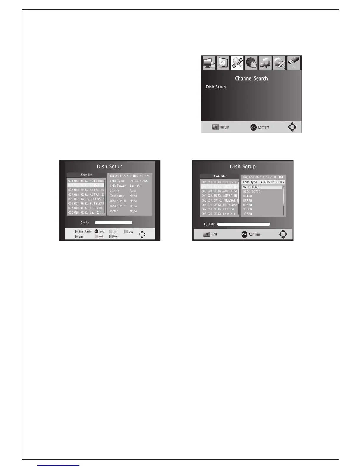 (Figure:Satellites' List) (Figure:LNB Type Setting)