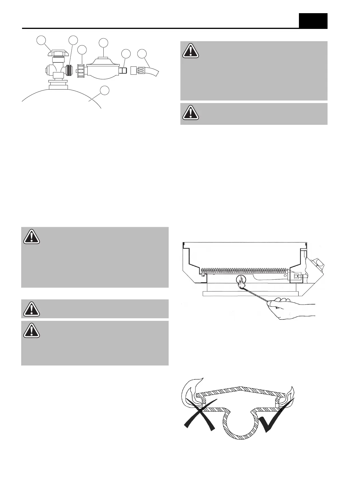– Kontrollera att gasflaskventilen (6) är stängd.