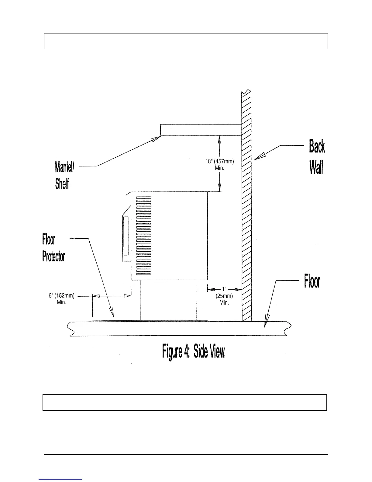 ceiling, shelf, mantle or combustible object and the top of the stove must be maintained. See Figure 4.