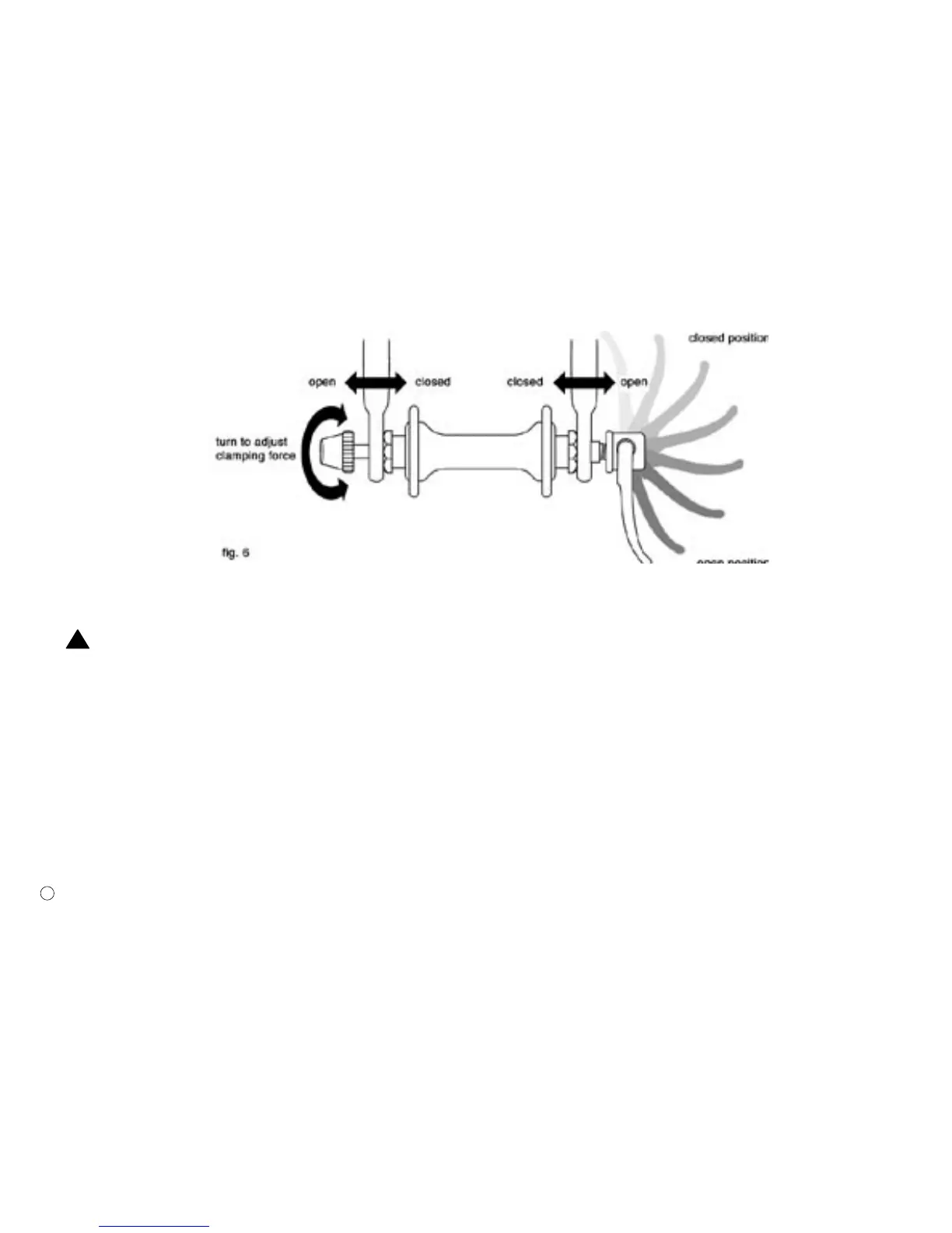The wheel quick release uses a cam action to clamp the bike’s wheel in place (see fig. 6). Because of its adjustable nature, it is critical that you understand how