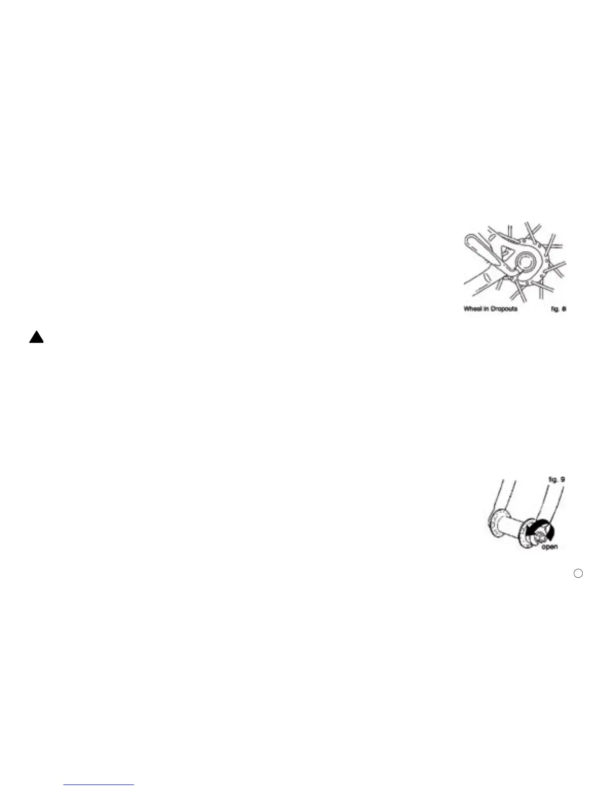 (3) Move the quick-release lever to the OPEN position (see fig. 6). The lever should be on the side of the wheel opposite