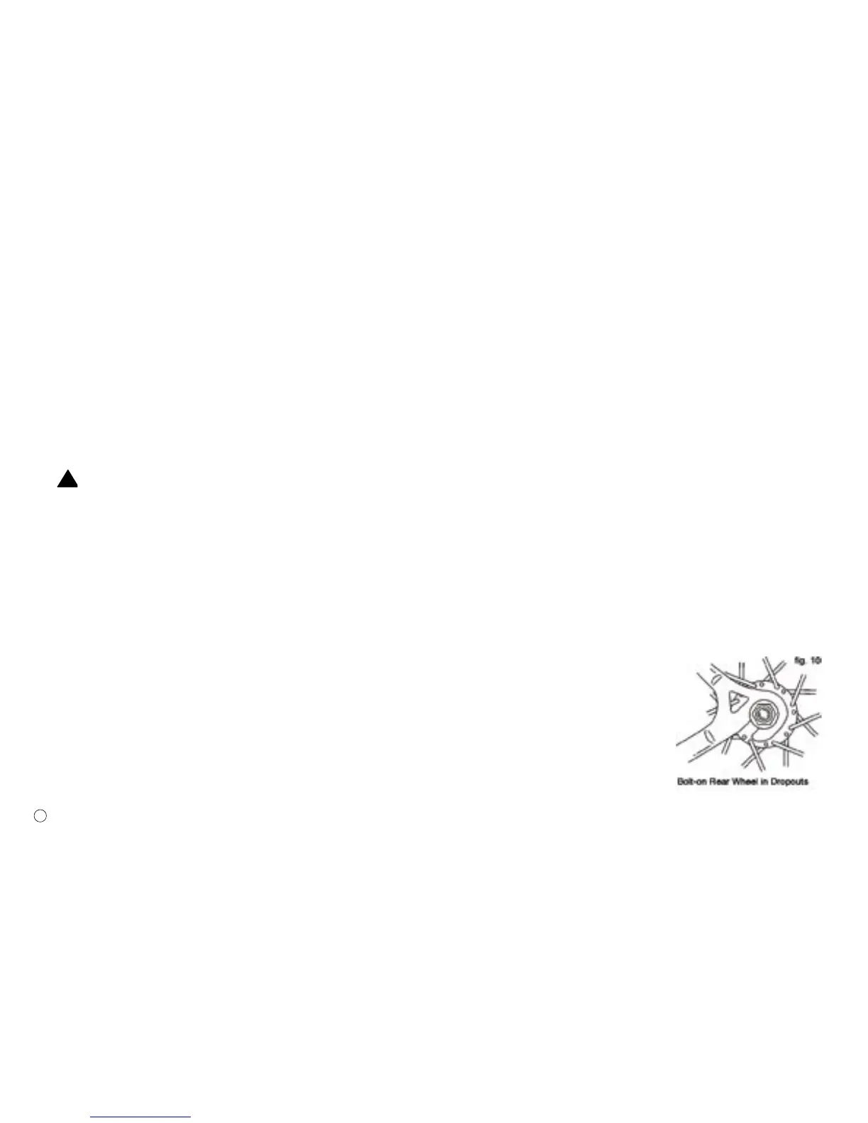 (2) While pushing the wheel firmly to the top of the slots in the fork dropouts, and at the same time centering the wheel rim in the fork, use the correct size