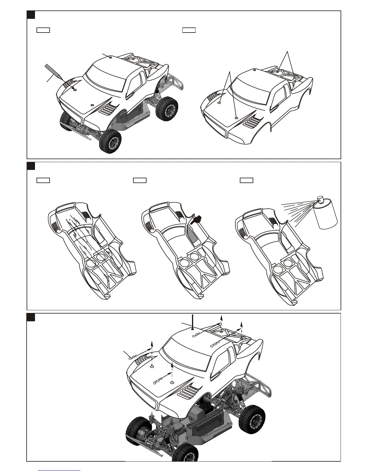 *Before cutting and making holes in the body, put the unpainted body on the chassis