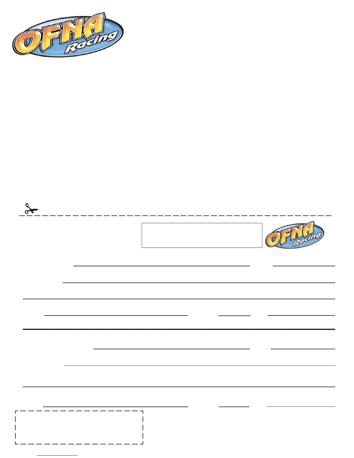 OFNA Racing congratulates you on your purchase of our fine OFNA Product. With proper maintenance and han-