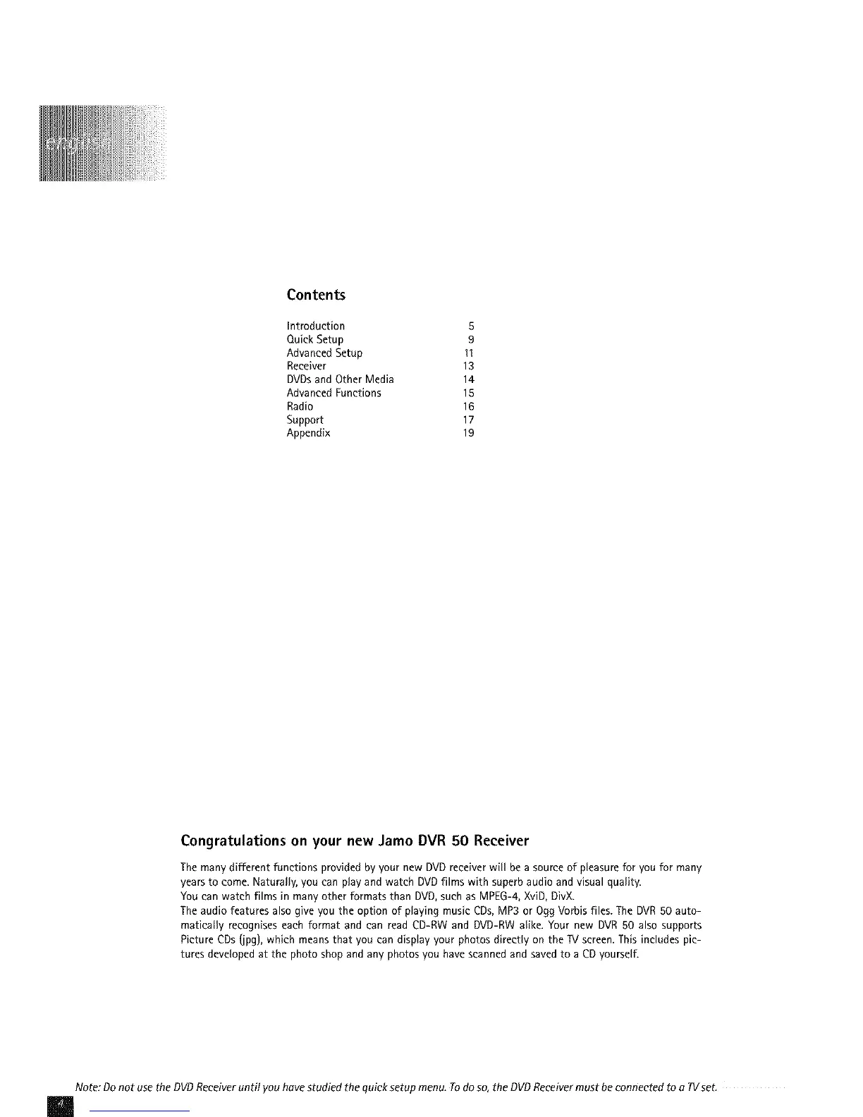 Note: Do not use the DVD Receiver until you hove studied the quick setup menu. To do so, the DVD Receiver must be connected to a TVseL