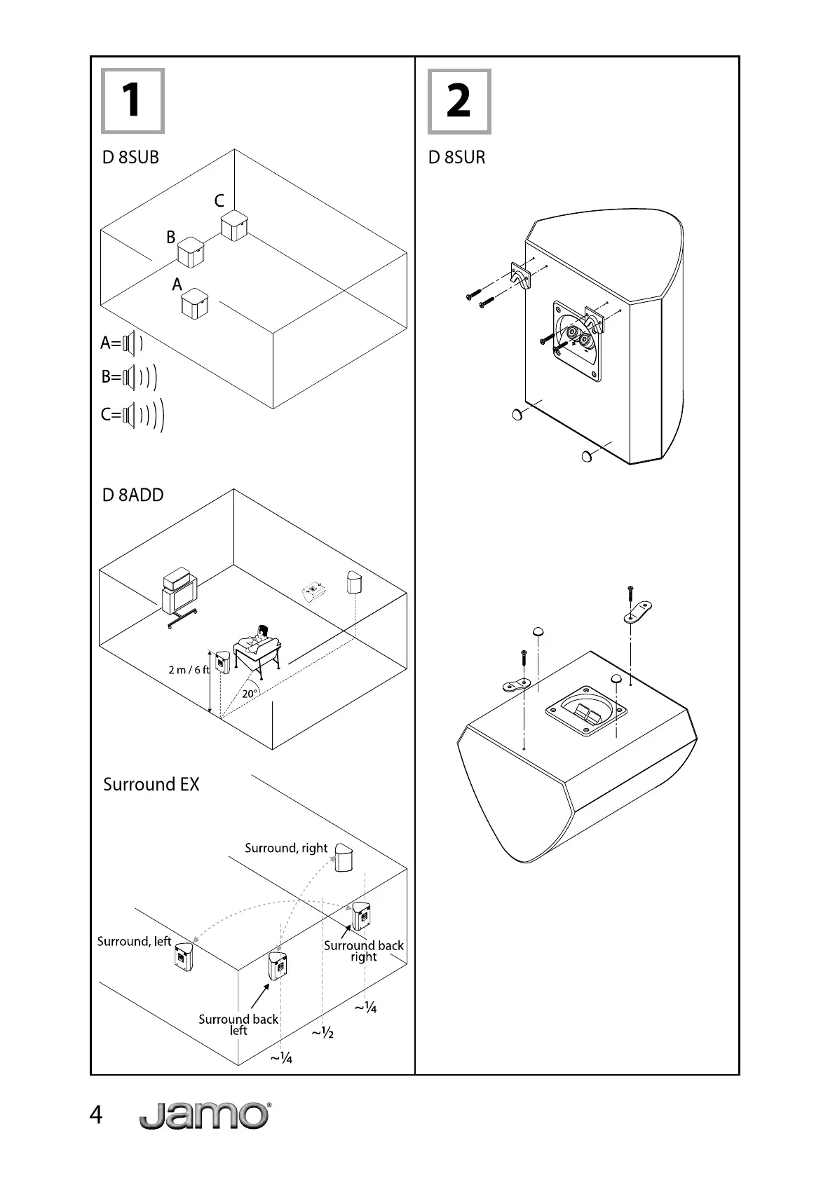 JAMO D 8ADD - Product Diagrams; D 8 SUB Setup Diagram; D 8 ADD Setup Diagram; Surround EX Placement