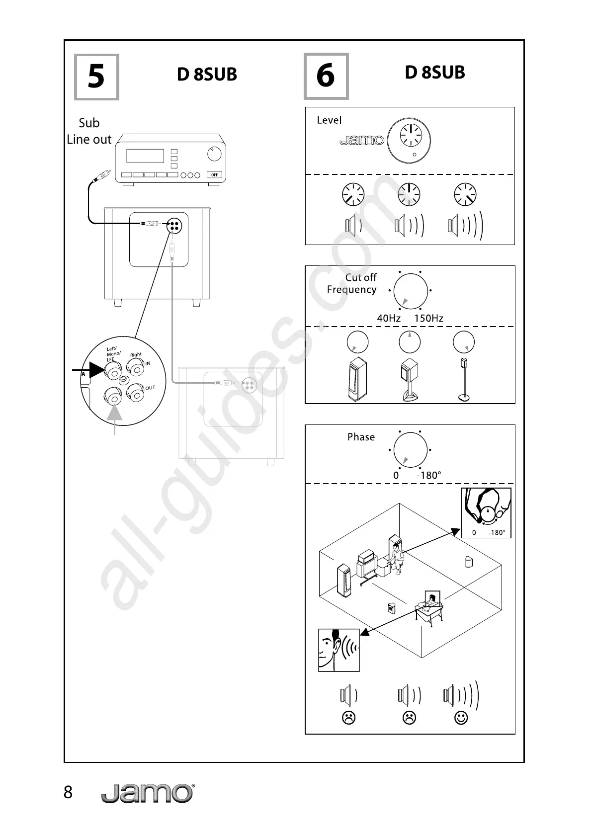 JAMO D 8ADD - D 8 SUB Operation Controls; Subwoofer Level Adjustment; Cut off Frequency Setting; Phase Adjustment