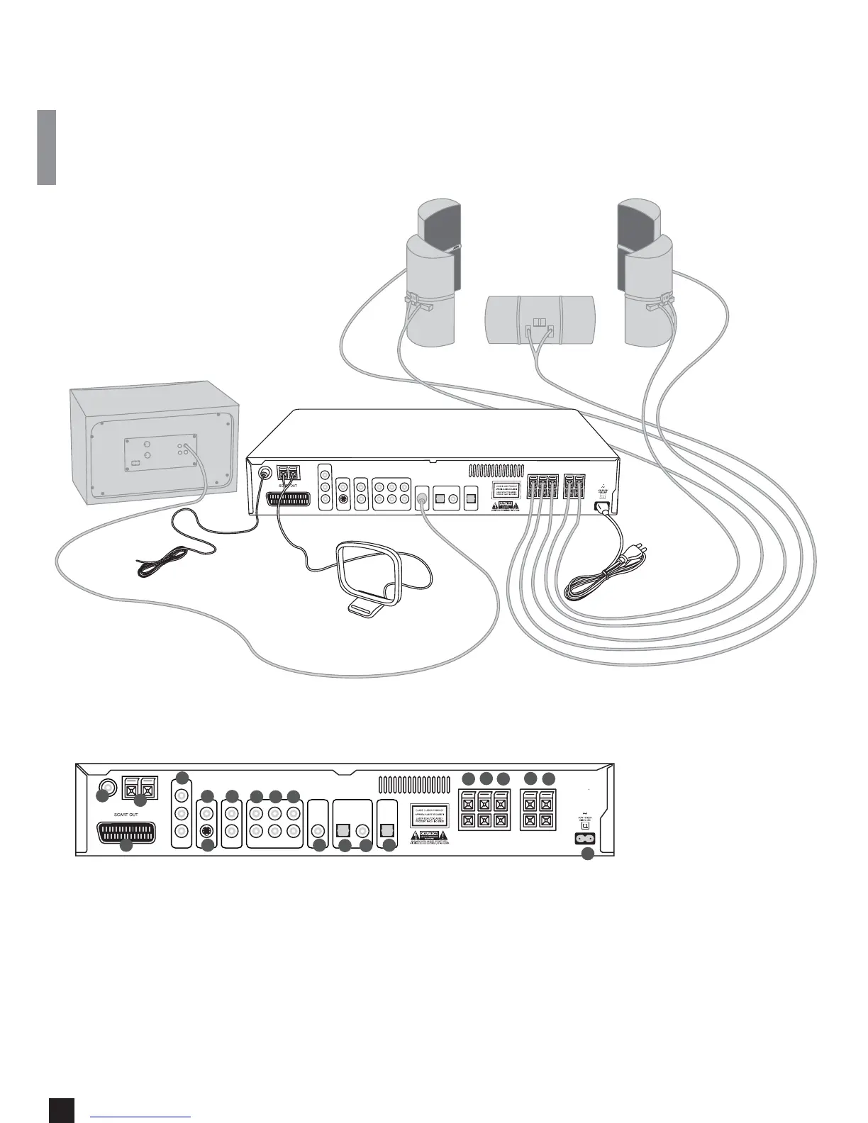 Refer to the illustration below to connect speakers, subwoofer and antennas. To fit the DVR 50 into your current video system, refer to the three