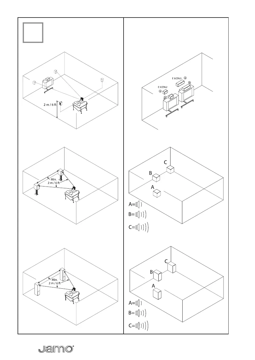 JAMO E 500 - Speaker System Placement Diagrams; Stereo Speaker Positioning; Subwoofer Placement Guide