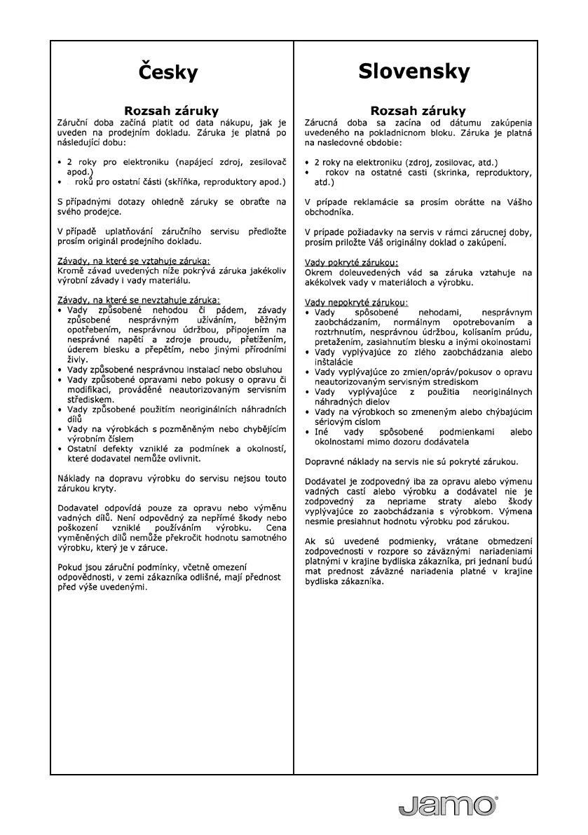 JAMO SUB 200 - The Scope of the Warranty; Garantiens Omfang
