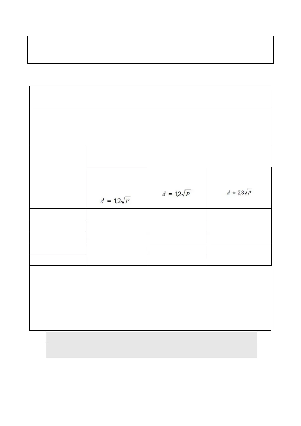 metres (m) can be estimated using the equation applicable to the frequency of the transmitter, where P is the maximum