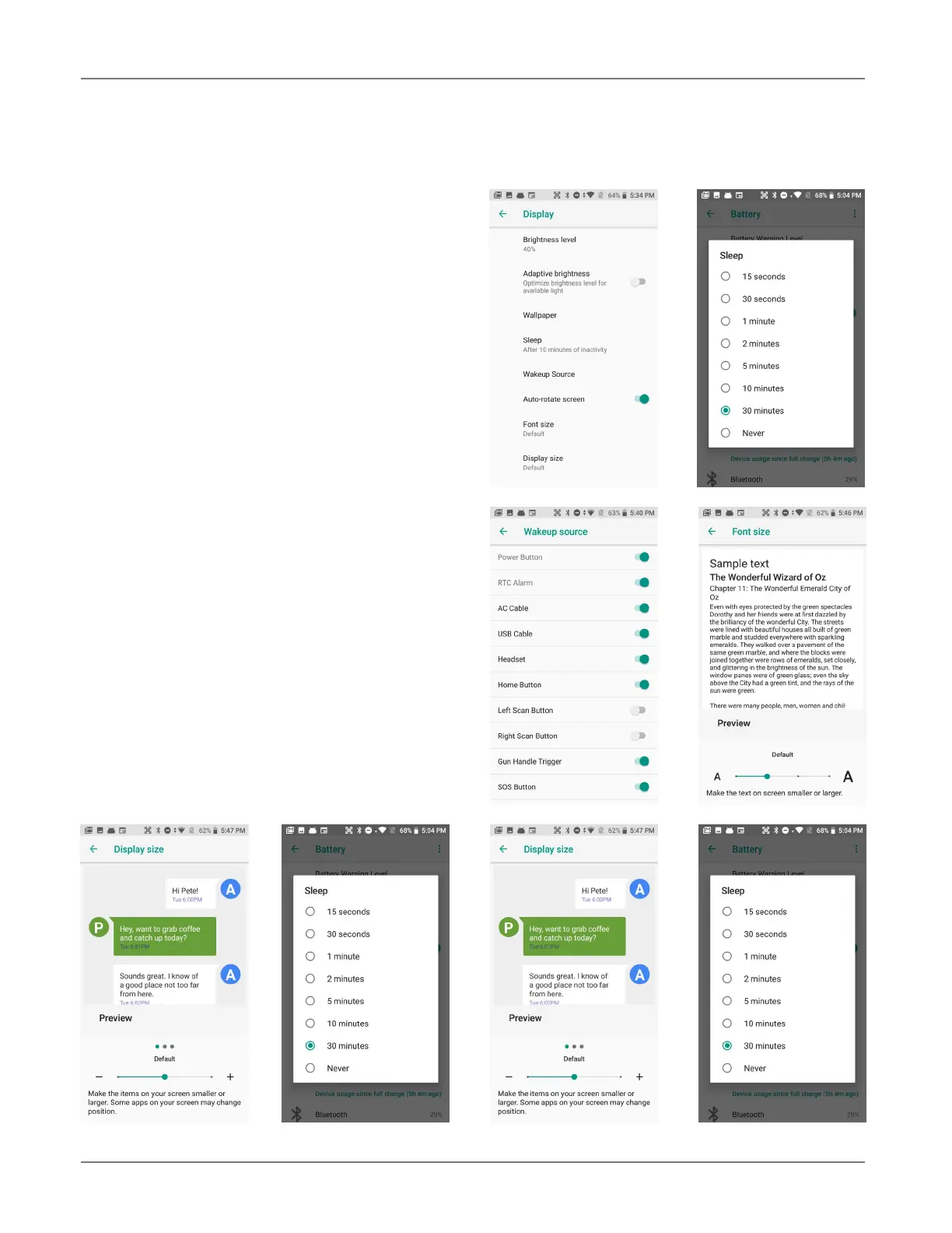 The Sleep screen allows screen timeout and