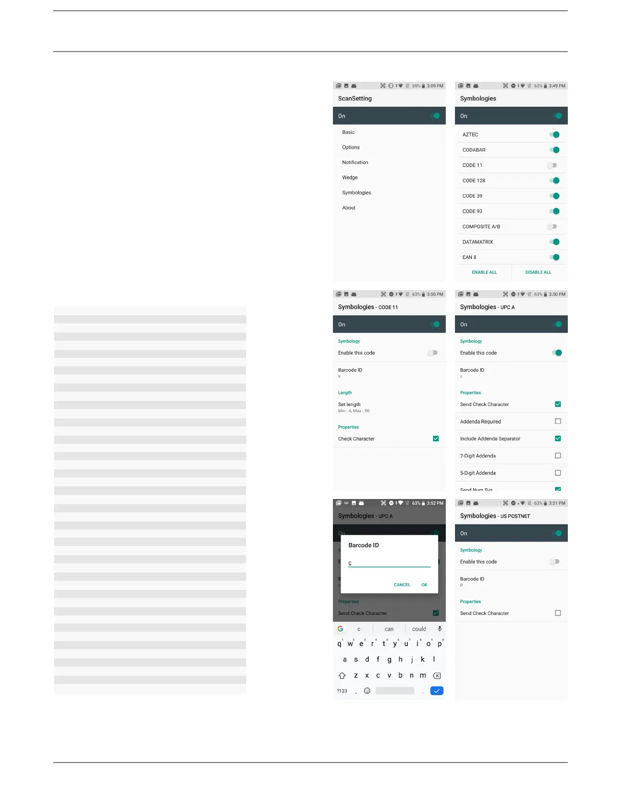 tings > Scan Settings > Symbologies shows