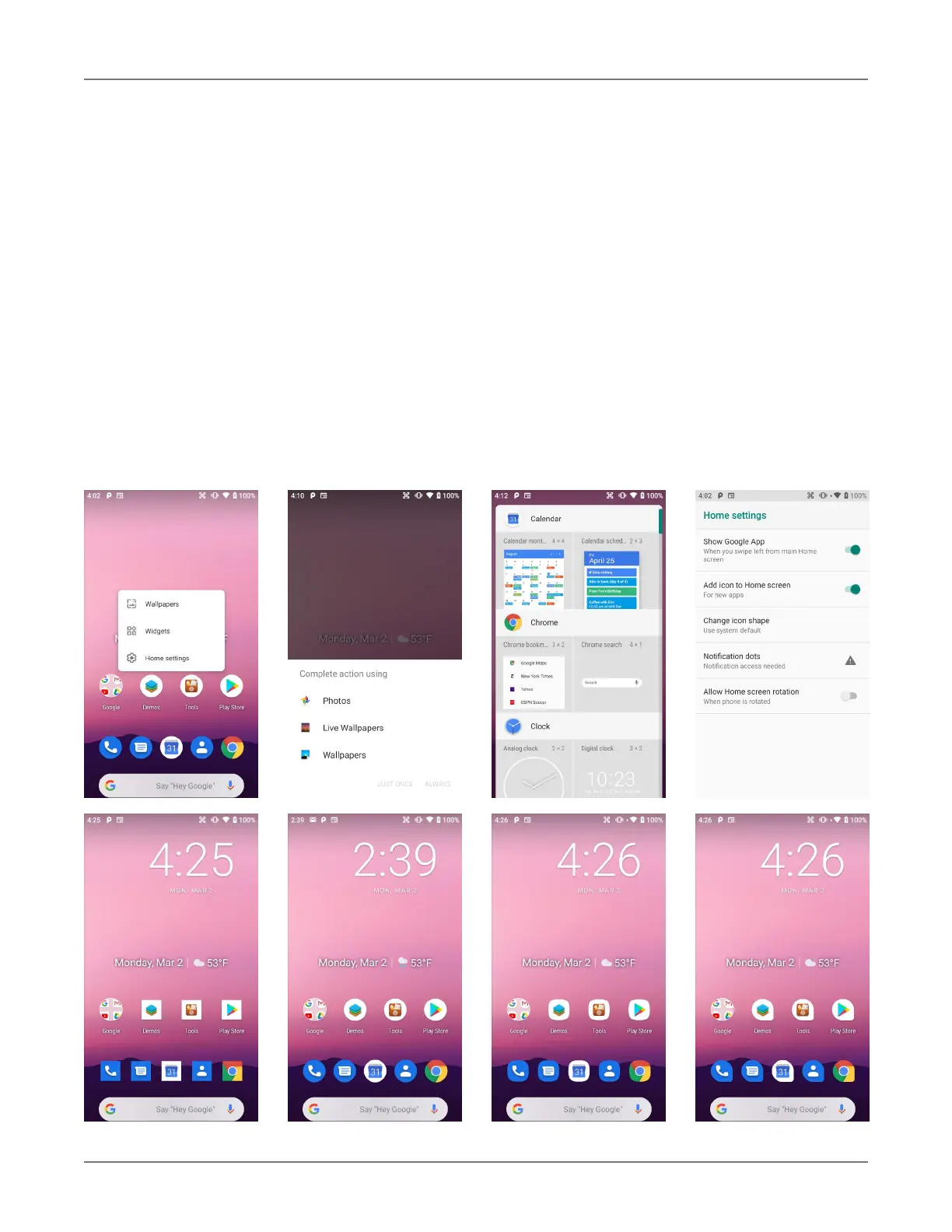 Widgets, Home settings.