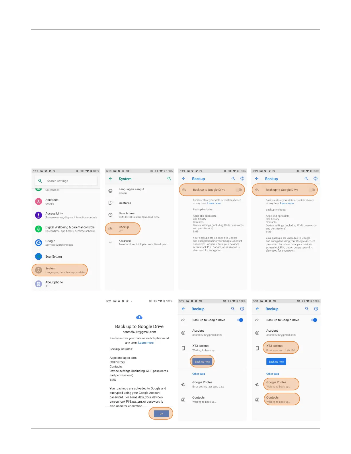 and data can be restored). Instead, Android synchronizes settings and data with Google Drive,