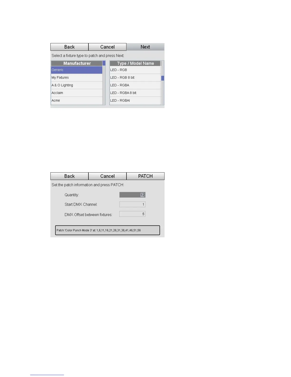 column. When your fixture is highlighted press the Next button. Stage CL