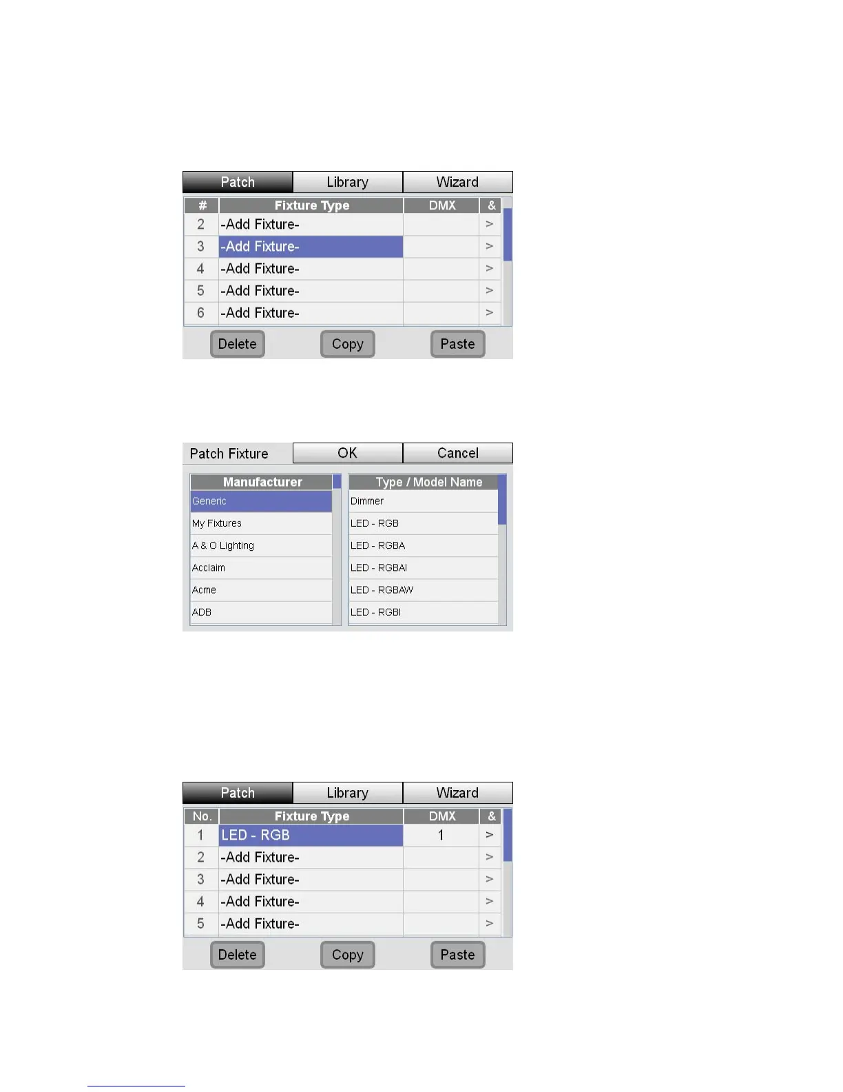 To add a fixture, without using the wizard, open the Patch window and if it’s not