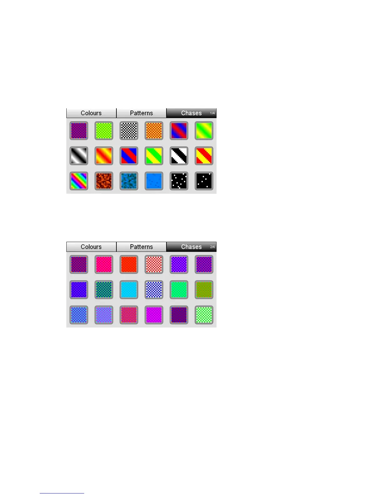 selection. To switch between pages press the Chases button to cycle between