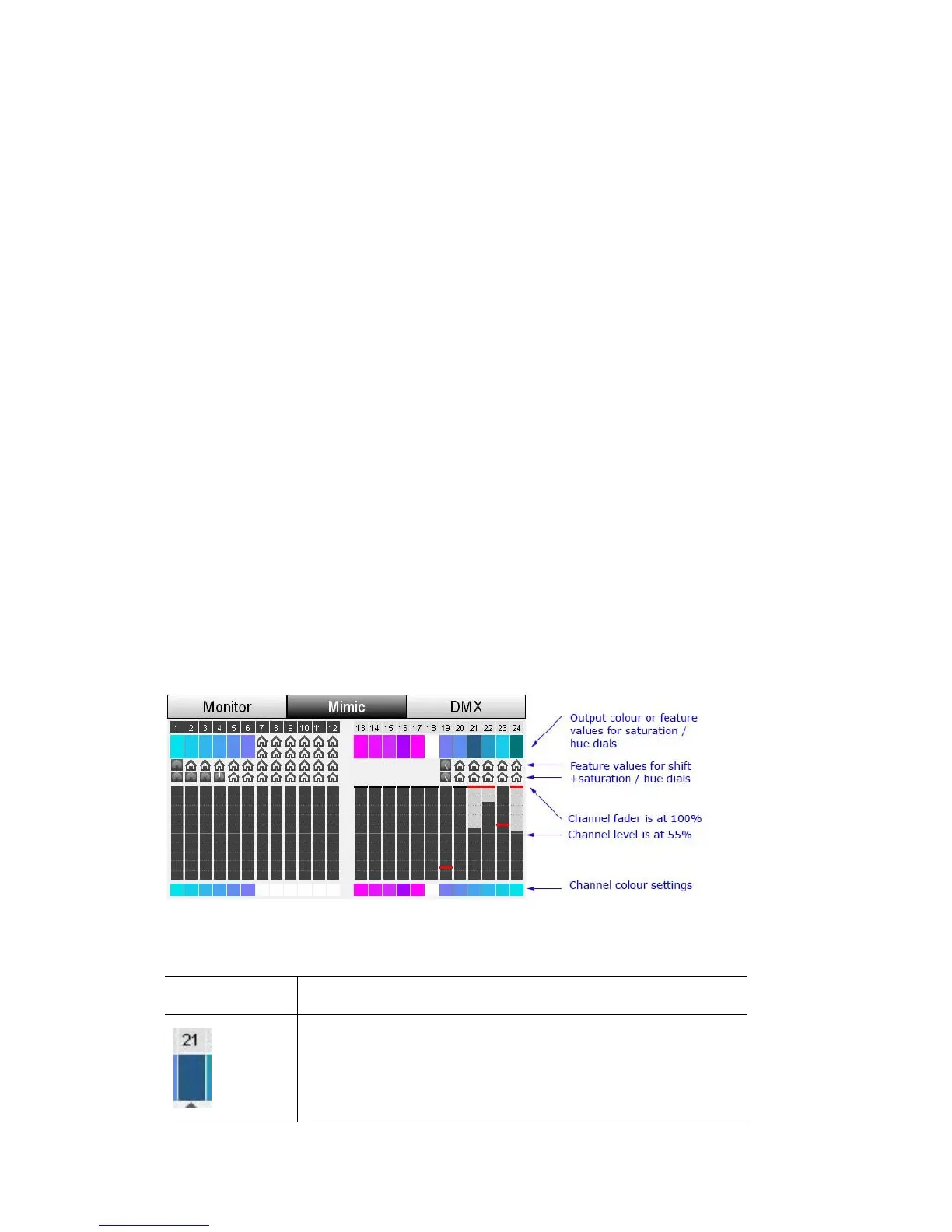 The colour box, above the fader bar shows the colour output
