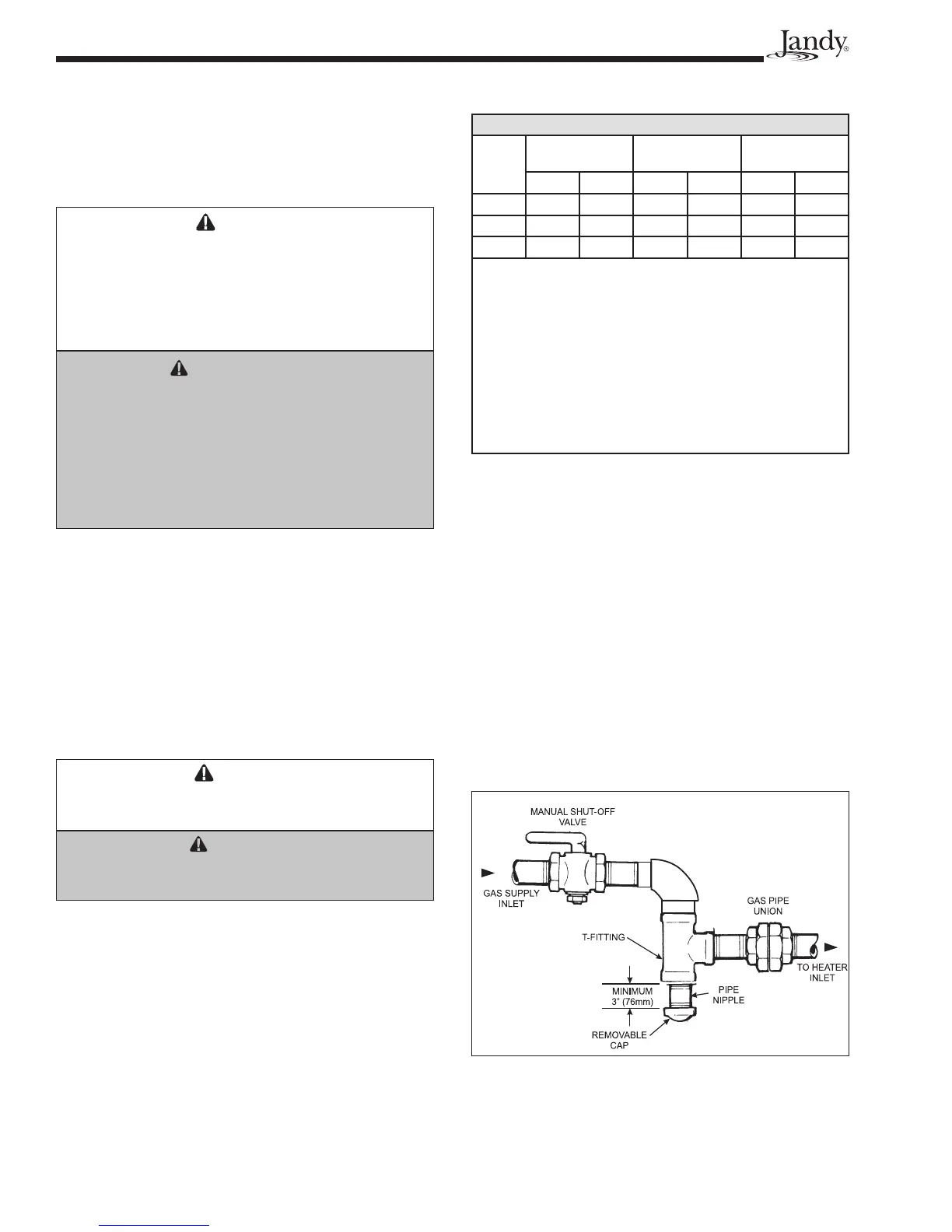 1. Gas piping installation must be in accordance