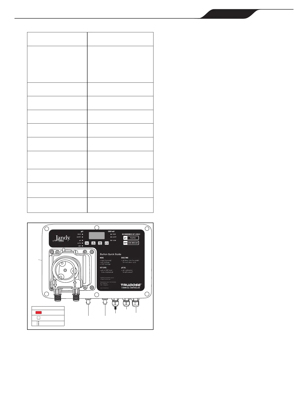 • Alarme de suralimentation pH - DEL rouge clignotante et