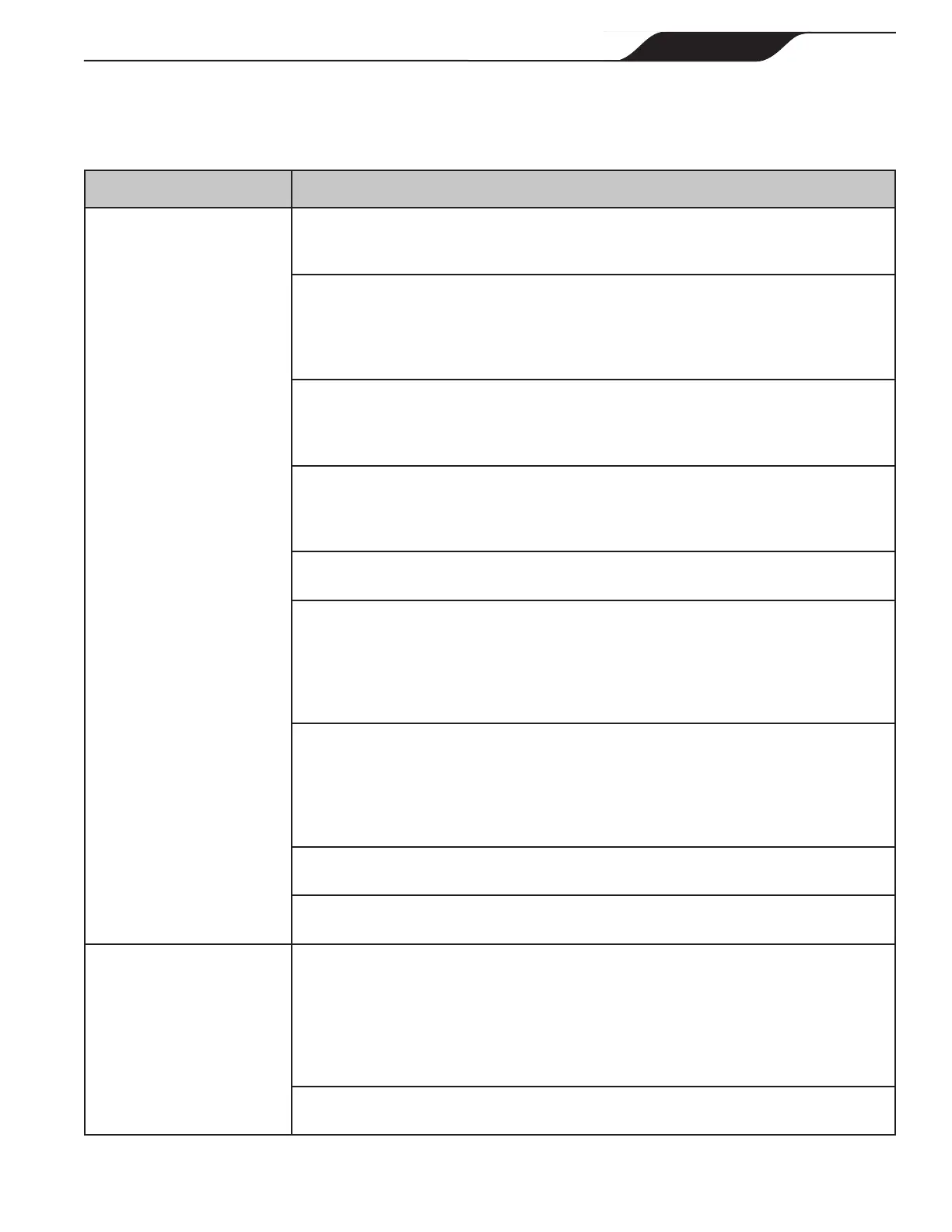 Symptom Possible Cause/Solution