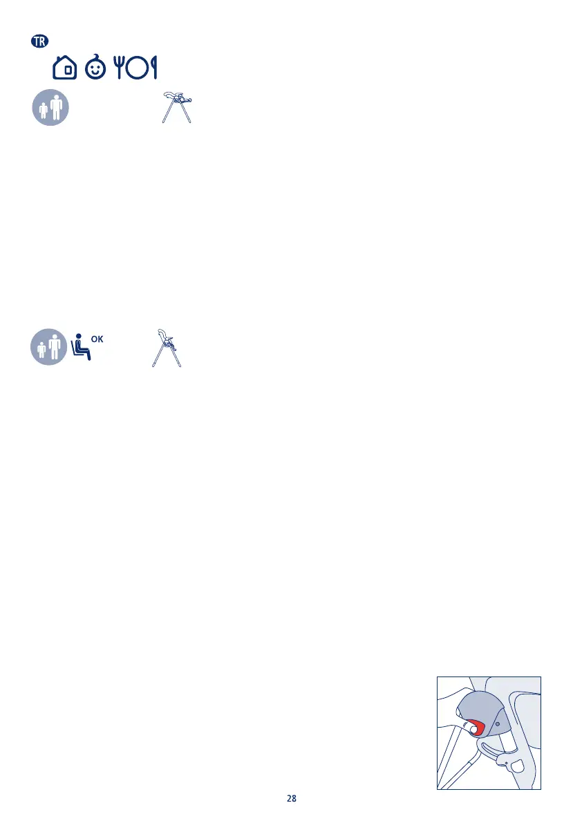 •Yemek sandalyesi, kendi kendisine oturma yetisine sahip olmayan çocuklar için uygun değildir.