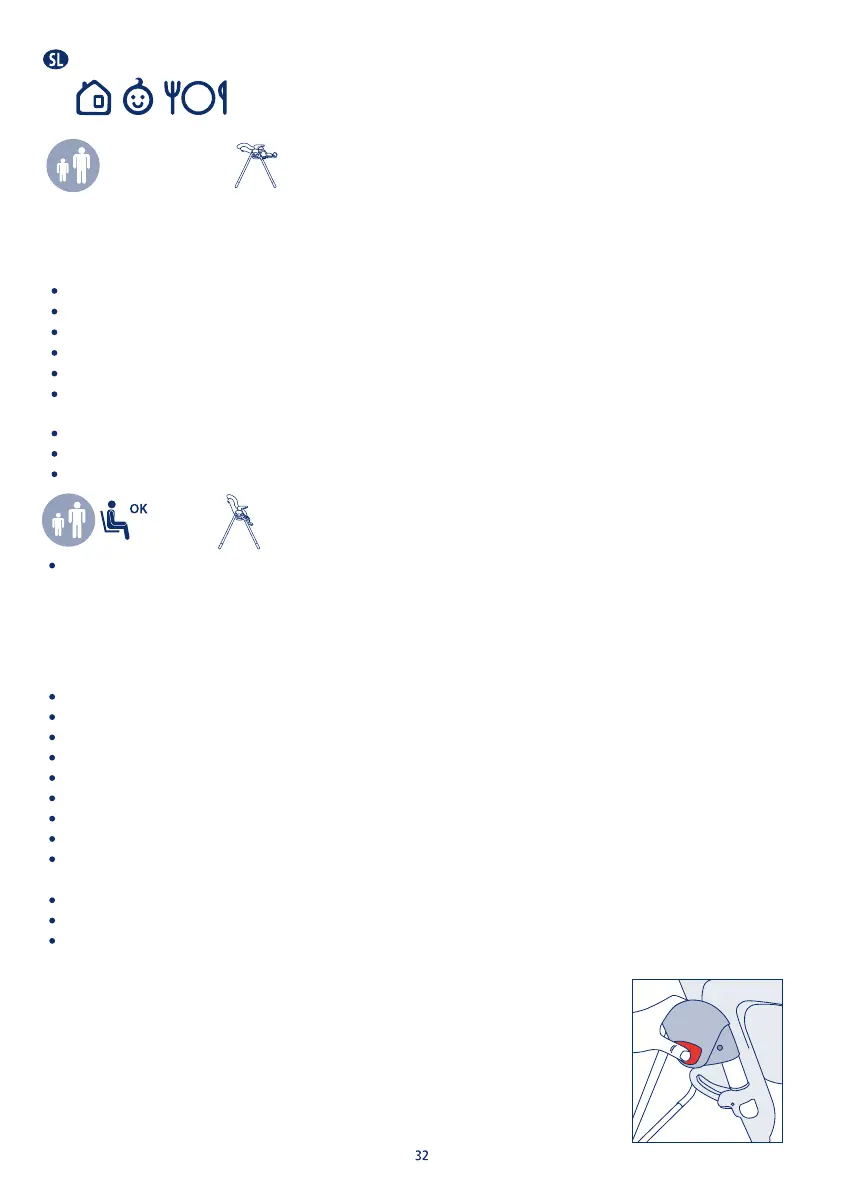 "Stolček uporabljajte le v primeru, da so vsi njegovi sestavni deli pravilno pritrjeni in nastavljeni".