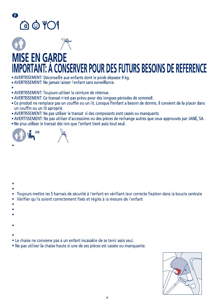 "Risque de basculement si l’enfant a la possibilité d’appuyer ses pieds contre une table ou tout autre élément".