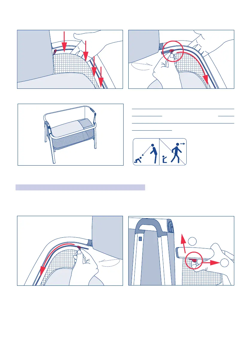 At the same time on both sides, unlock the safety rail by sliding buttons with your nger (Step 1) and move the rail