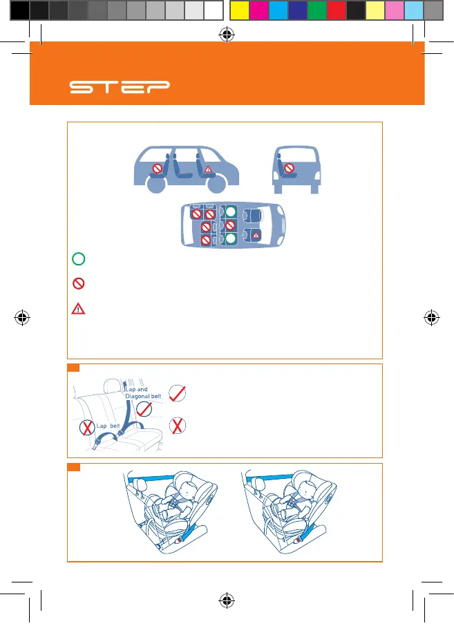 tions • Le siège auto ne doit pas être installé à ces places • Não é permitido instalar a cadeira auto nestas posições