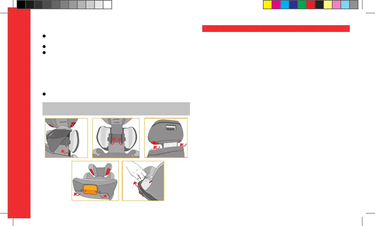 -Booster seat: Put the seat in its fully reclining position. Unfasten the two clips on the