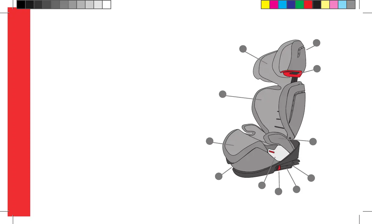 10. Tlačítko pro uvolnění délky upínání ISOfix