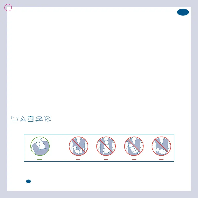 may prevent the safe use of the product. This baby carrier must never be used under the influence of alcohol or drugs, or if the